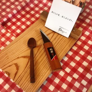 木工教室では木のマイスプーン作り!みなさん黙々とナイフで削り、ヤスリで磨き、くるみの油で仕上げるという素敵なモノづくりでしたっ。「今後の活動に活かして下さい」と、スプーン作りの素材を少し分けていただけました!くるみの油が難しい時は、椿の油でもいいよねって話から、住民の方に、椿のどこに油があり、どうやって抽出するのか教えてもらいました☆今度やってみます♪