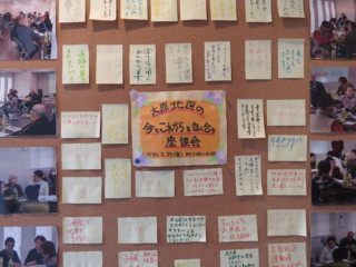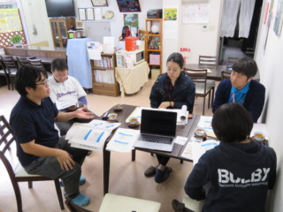 仮設団地での支援活動から災害公営住宅でのコミュニティデザインについての情報共有となりました。バルビーの取り組みに近い活動で今後の支援に役立てたいと思います。また木造仮設の有効活用についても事例棟を交えて協議させていただきました。つながりデザインセンター、東北工業大学、あすと長町市営住宅自治会の皆様に対応していただきました。
